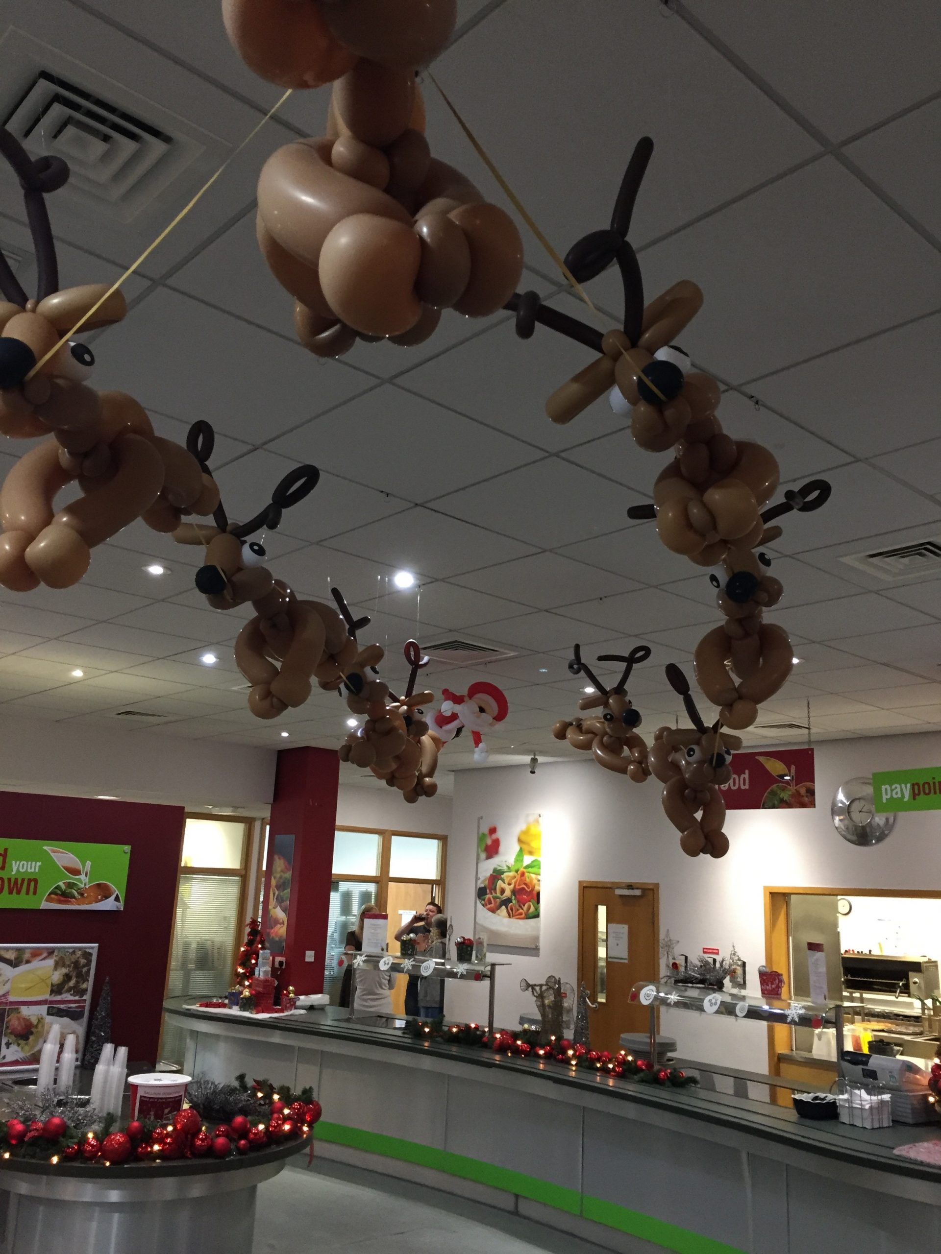 Flying balloon santa and reindeer