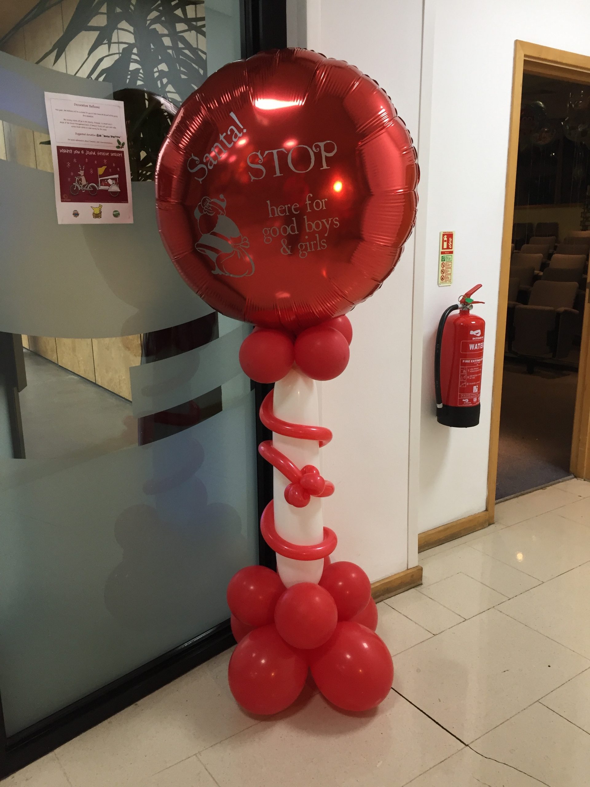 Balloon Santa stop here sign